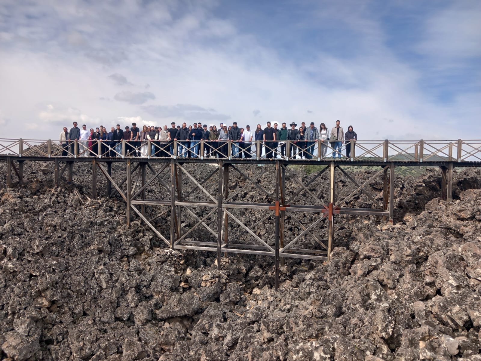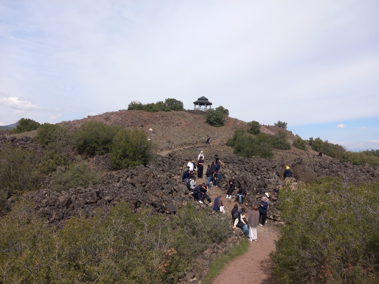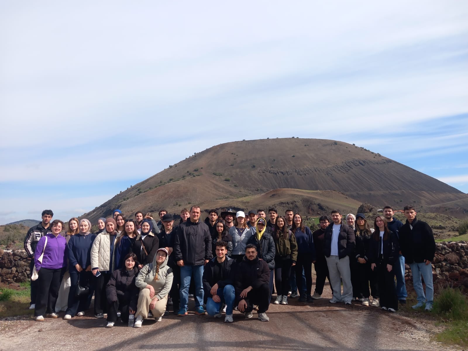Arazi çalışması sırasında bölgenin Kuvaterner yaşlı volkanizmasına ait çok sayıda morfolojik unsur incelendi. Bu kapsamda lav akıntıları ve leçelik sahalar, volkan konileri, maarlar, cüruf konileri, lav kubbeleri, lav tüpleri ve mağaraları, piroklastik akıntı ürünleri ile volkan bombaları yerinde gözlemlendi ve oluşum mekanizmaları tartışıldı. Saha çalışmasının önemli aşamalarından birini, Sandal yöresinde yer alan ve halk arasında “Divlit” olarak bilinen büyük volkan konisine gerçekleştirilen tırmanış oluşturdu. Bu tırmanış sırasında koni morfolojisi, krater yapısı ve çevredeki lav akıntılarının yayılım özellikleri doğrudan gözlemlendi. Çalışmanın bir diğer bölümünde, “Kuladokya” olarak adlandırılan alandaki peribacaları incelendi. Bu sahada peri bacaları ile plato yüzeyindeki sütun bazalt yapıları değerlendirildi.