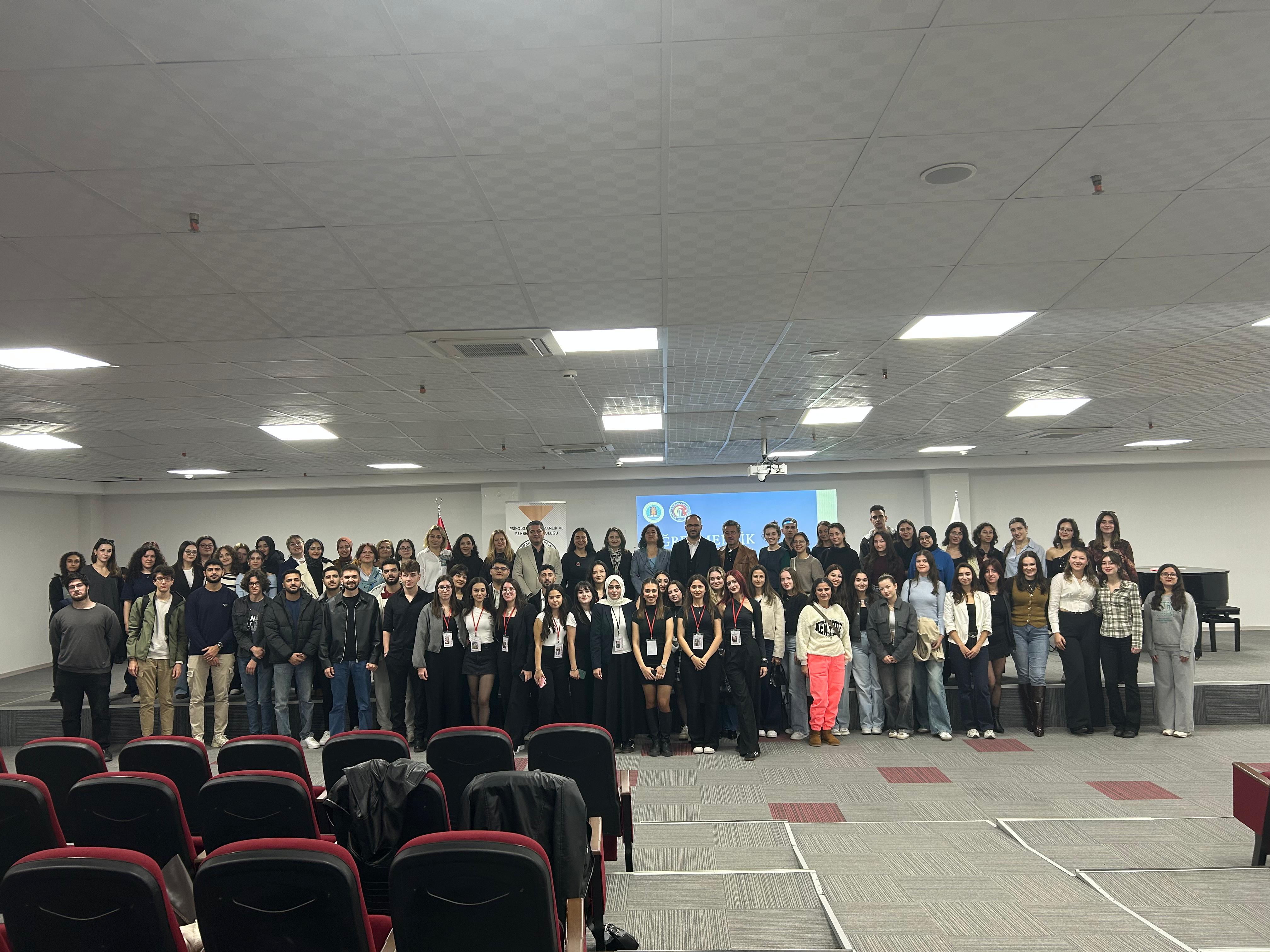 ÇOMÜ Psikolojik Danışmanlık ve Rehberlik öğrencilerinin düzenlediği “Öğretmenlik Mesleğinin Geleceği” adlı paneli, Eğitim Fakültesi’nde yoğun bir katılımla gerçekleştirdik. Panelin moderatörlüğünü Prof. Dr. Nursel Topkaya üstlendi.